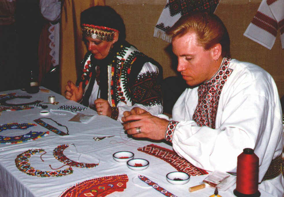 Vasyl/Bill Jula and Arlene Esterburg, who's wearing a Hutsul dress, at the Pittsburgh Folk Festival. "We're on the road, again!". |