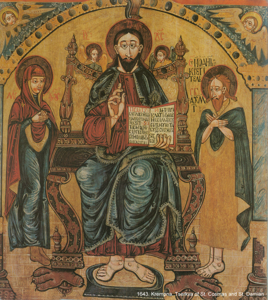 The theology of the icon has given a very clear formulation of the differences between the painting of the Eastern Church and the Roman Catholic religious art. For the former icons were the only admissible objects of veneration. However, already in the late Byzantine period East encountered West. Although it was a hostile encounter, in the realm of art it brought visible changes. We may say that in this first period the West had much to thank the Byzantine art for, as the icons which were brought in to the West, especially to Italy, not only helped to create new types of images, but above all they were treated as images endowed with a miraculous power. However the reaction of the West upon the East from the period of the fall of Byzantium proved far more painful, sometimes far more destructive for the icons. Russia was the only independent country to continue the Orthodox traditions, both in the theology of the icons and in the painting of the canonical icons. But even here from the mid-17th century onwards the impact of Western art was stronger and stronger. This gave rise to the co-existence of a religious art Latinized both in form and content with the traditional icon painting. Meanwhile in Greece, Crete, and also Central Europe (modern Poland, Western Ukraine, Slovakia, Hungary, and Rumania) the influence of Western art first resulted in the abandoning of the gold background, which was replaced with other colors, a more naturalistic approach to the figures and robes, the introduction of Renaissance architecture, and the removal of the kovcheg. The use of Western, chiefly Dutch or German pattern-books became a common practice. This implied the introduction of iconographic subjects which were wholly alien to the art of the icons. The formal impact led to a complete change of style and composition in the representations - to an imitation of reality in the portrayal of architecture and landscapes entirely out of character for the icon theology, to the use of superficial color, converging perspective, external illumination, diversification in the emotional states depicted in the figures, inappropriate attention to anatomical details, and superfluous motifs of decoration in a Baroque manner. The reproduction of visual realities in tabular icon art eventually led to the deprivation of that church art of the timelessness so rigidly adhered to in the canonical icons. Instead the events presented acquired the attributes of transience, and evangelical reality ceased to be the mandatory form. A very significant milestone on the road to the stripping of the icon of its sacred character was the repudiation of the theologically necessary rule of inscribing icons with identifying captions. The change in the function and form of the iconostases gave rise to the introduction of sculpture, which had never been practised in icon theology. And when graphics were brought into religious worship, its mass-produced character made the images reproduced on paper forfeit their attribute of uniqueness, which is what has always marked out, and still marks out icons. The influence of Renaissance aesthetics led to a change in the status of the artists, who now documented the idea that their works were an outcome of their individuality in the form of a signature on their paintings, along with inscriptions identifying their patrons and the exact date when a particular work was made, in spite of the loss of so many characteristics of the icon, the "mixed" painting is distinctive as a type that grew up on a cultural border. The order of the icons we present here has been chosen in accordance with the meanings of its subject-matter and the hierarchy ascribed by icon theology to the various figures and representations. In compliance with that hierarchy, the album opens with the icons of Christ, the acheiropoetic icons first; followed by representations of the Holy Trinity; of the Deesis group; and then by images of the Mother of God. Next come the narrative representations, especially the icons illustrating the twelve great feasts of Eastern Christendom showing the main events from the lives of Jesus and Mary as described in the Gospels. Then there are the images of the Patriarchs, Prophets, Archangels, Evangelists, Apostles, Fathers of the Church, Bishops, Holy Martyrs, Soldier Saints, and other Saints. The album closes with representations of the Last judgement, which contain the hope of the life to come.