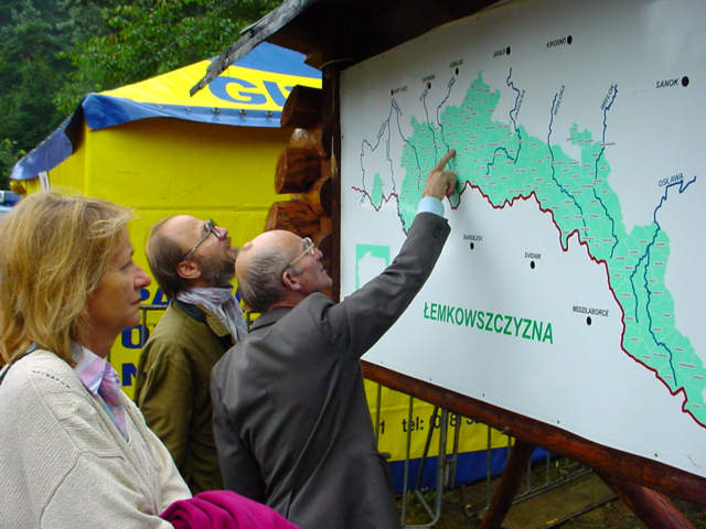 15. Tu żyli nasi ojcowie i dziadowie – pokazywali na olbrzymiej mapie Łemkowszczyzny przybyli z USA i Kanady