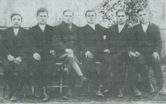 Білцарівскы парібци довоєнных - тридцетых років. З ліва на право: Андрий Галябурда, Ваньо Трохановскій (Сидорів), Сивестер Трохановскій, Ваньо Горощак, Миколай Костельник, Афтанас Малиняк. Знимку прислал редакциі Нестор Репела з Донбасу.